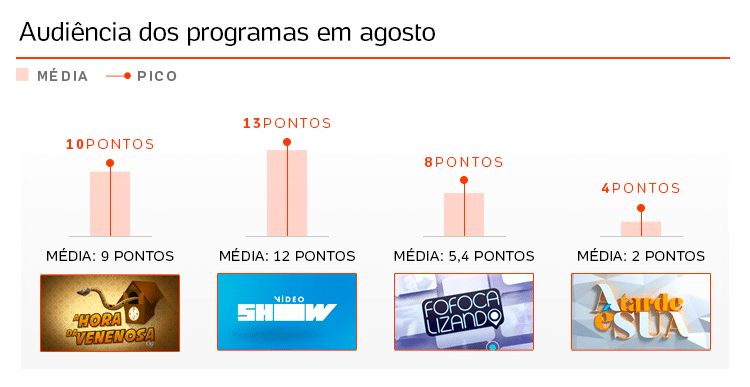Na Record, o "Balanço Geral" tem duas versões do mesmo quadro "A Hora da Venenosa", em SP, e "A Hora do Venenoso", no Rio. Ambos têm conquistado bons índices de audiência com Fabíola Reipert e Amin Khader (respectivamente) contando os bafos de celebridades de A a Z. O programa alcançou uma média de 9 pontos, em São Paulo, e 10, no Rio, em agosto. A média do mesmo período do “Vídeo Show” foi de 12 pontos.