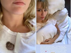 Os dois aparecem bem aconchegados na cama, com Simpson surgindo sem camisa e Miley Cyrus de lingerie.