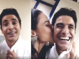 Nas cenas flagradas pelos paparazzi, vemos Oliveira usando um maiô azul com franjas, bem ao estilo fashion de Vivi Guedes. Guizé, na pele de Chiclete, aparece beijando-a a levantando-a em seu abraço.