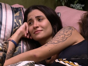 Gabi tentou consolar o colega de confinamento e mostrou apoio. "Você foi abençoado. Você mereceu viu, continue assim, segura na fé, isso aí", comentou a cantora.