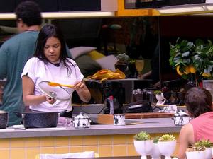 "Então passa fome", comentou a cantora. "Fome eu não passo, faço meus ovos", afirmou o brother. "Então não come o que eu fizer, está sujo, imundo, podre. Fica procurando defeito", reclamou Flayslane.