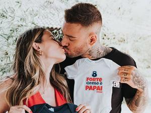 Lucas Lucco beija barriga de esposa grávida e revela nome do filho