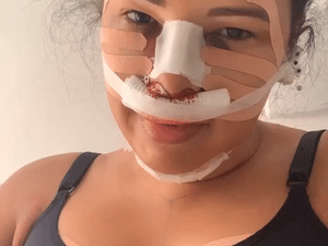 Ariadna Arantes apareceu nas redes sociais repleta de curativos no rosto após uma cirurgia no nariz. Relatando a recuperação da rinoplastia, ela acalmou os admiradores através de alguns vídeos postados no Instagram.