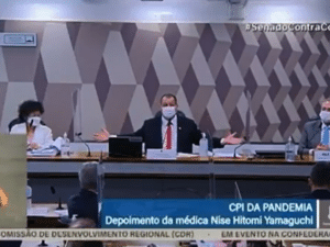 "Pesquisadores começaram a investigar e descobriram que a gerente de vendas da Surgisphere era, pasmem, Sras. Deputadas que estão aqui, Srs. Senadores, a gerente de vendas da Surgisphere era uma atriz pornô. Uma atriz pornô. Nada contra ela", disse o senador durante a CPI da Covid.