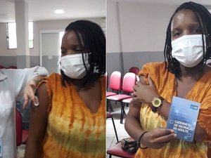 A modelo tomou a primeira dose do imunizante contra o coronavírus.
