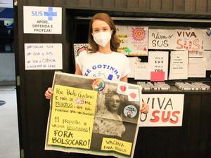Bárbara Paz foi se vacinar com um letreiro que dizia: "Viva SUS! Viva Drauzio! Não acredite nesse presidente! Não escolha a vacina!"