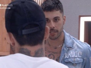 Caral**, velho, agora o meu tá na reta também, mas eu tô de 'boaça'. Não sei, vamos ver. O Gui votou em mim [na últoma formação da roça], declarou Erasmo Viana para Sthe Matos.