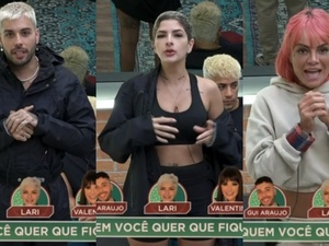 - Às 10h, Valentina liderava a enquete com 50,77% dos votos pedindo sua permanência. Gui Araujo contava com 31,37% e Lary Bottino continuava em último lugar, com 16,80%.